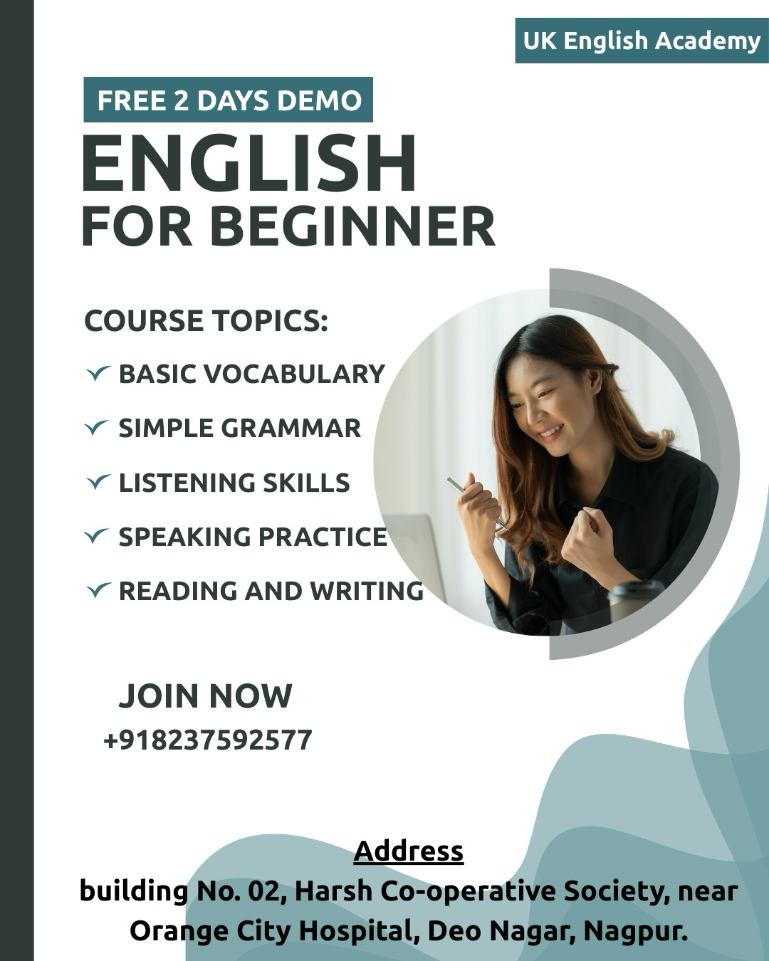 English Fluency in 3 Months: Join UK English Academy, Nagpur to become fluent in just few months • Step-by-step fluency program for fast results • Daily English speaking practice • Improve pronunciation and sentence formation • Build strong vocabulary for daily and office use • Real-life conversation and role-play activities • Speak confidently without grammar fear • Regular feedback and confidence-building sessions • Suitable for beginners, students, and working professionals