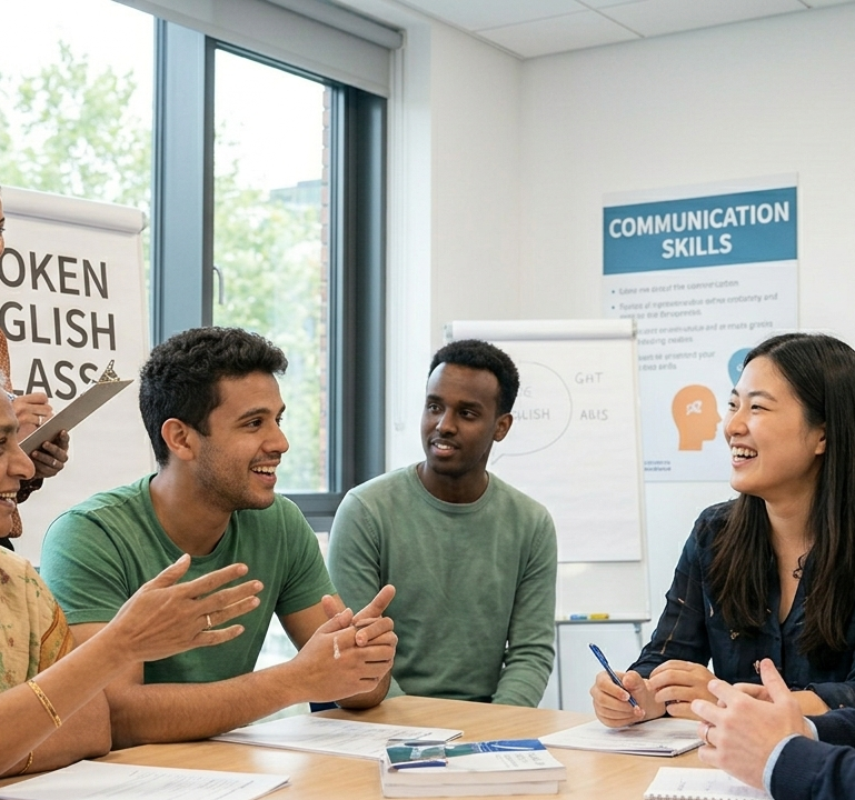 Our Spoken English institute offers practical and easy-to-follow training for learners at all levels, from beginners to advanced. The course focuses on daily conversation practice, confidence building, correct grammar, and clear pronunciation. With experienced trainers, flexible online and offline classes, and affordable fees, the program is suitable for students, professionals, and homemakers who want to improve their English speaking and communication skills effectively.